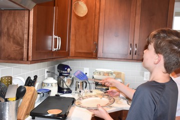 Flipping the pancakes.