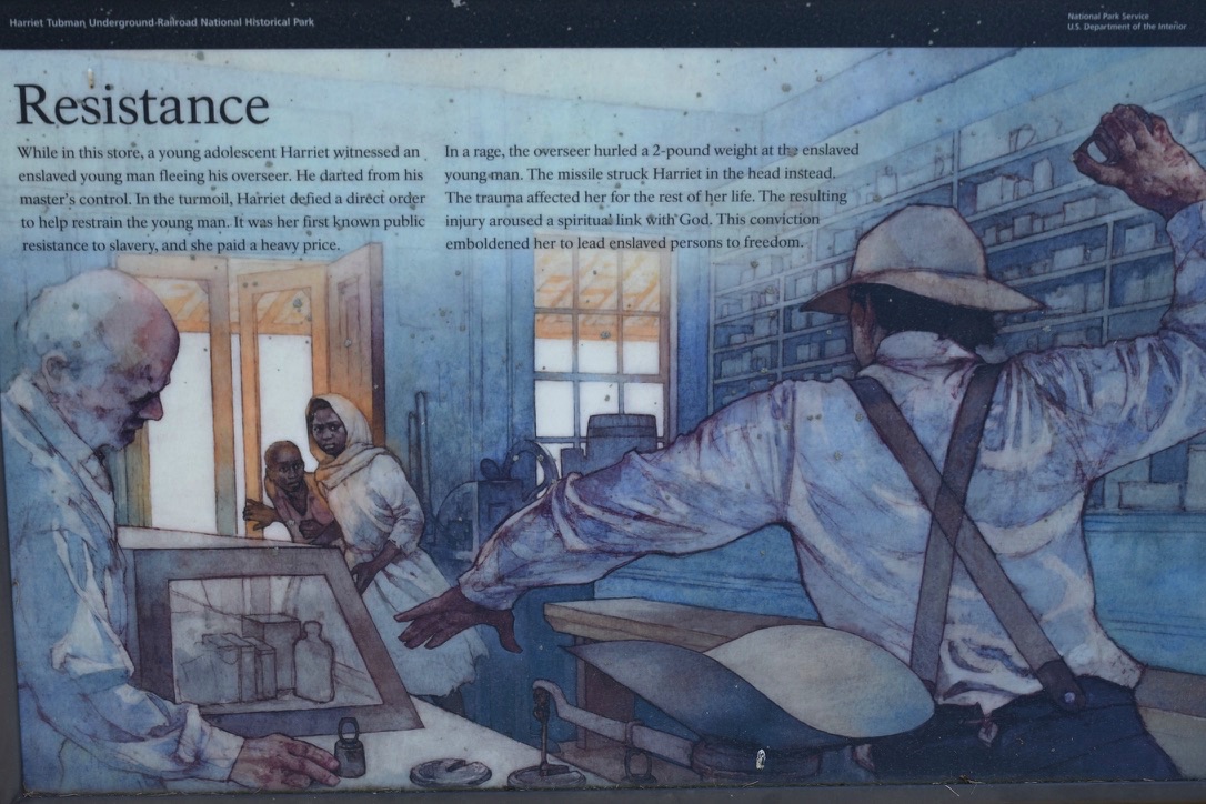 Tubman was seriously injured during an incident at this general store when she was in her teens. The resulting visions and seizures lasted a lifetime.